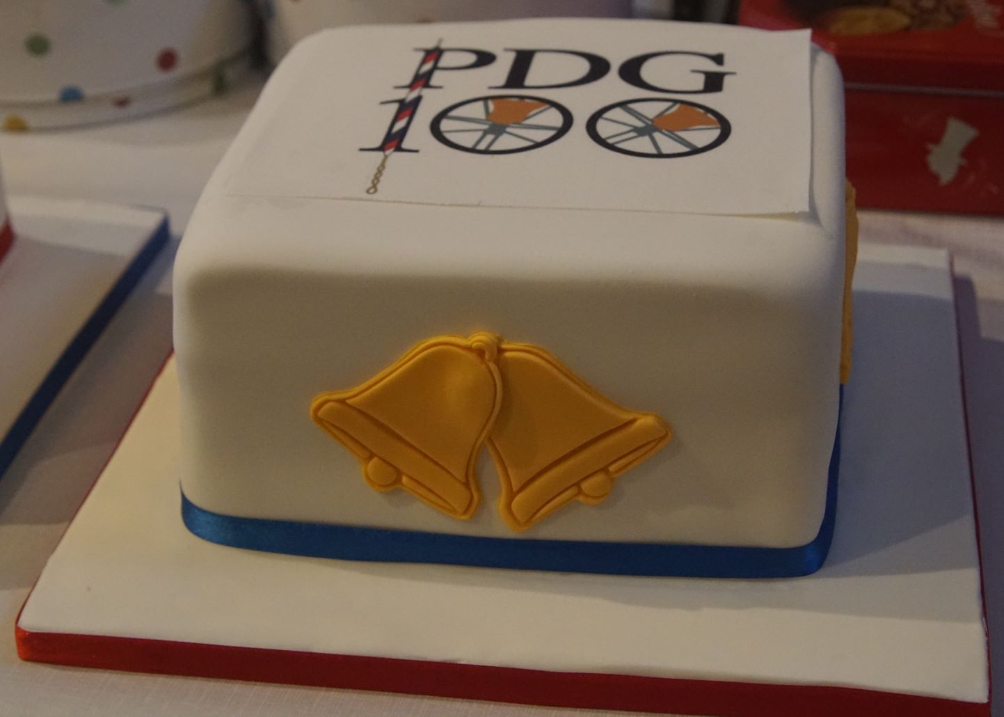 With the service and processions complete, the organist played Carillon de Westminster by Louis Vierne, with the well known quarter chimes emerging slowly through the foreground of urgent tinkling bits. We ambled around to the south transept which had been laid out by the Peterborough Branch to provide us with refreshments while we chatted around. I was too mean to buy enough parking time, so missed the cutting of the splendid PDG100 cakes. With the onset of the evening gloom we set off to climb the 551 feet back up to Badby.